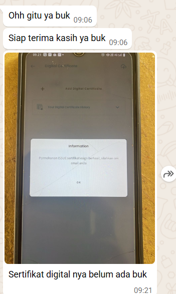 Sertifikat digital nya belum ada