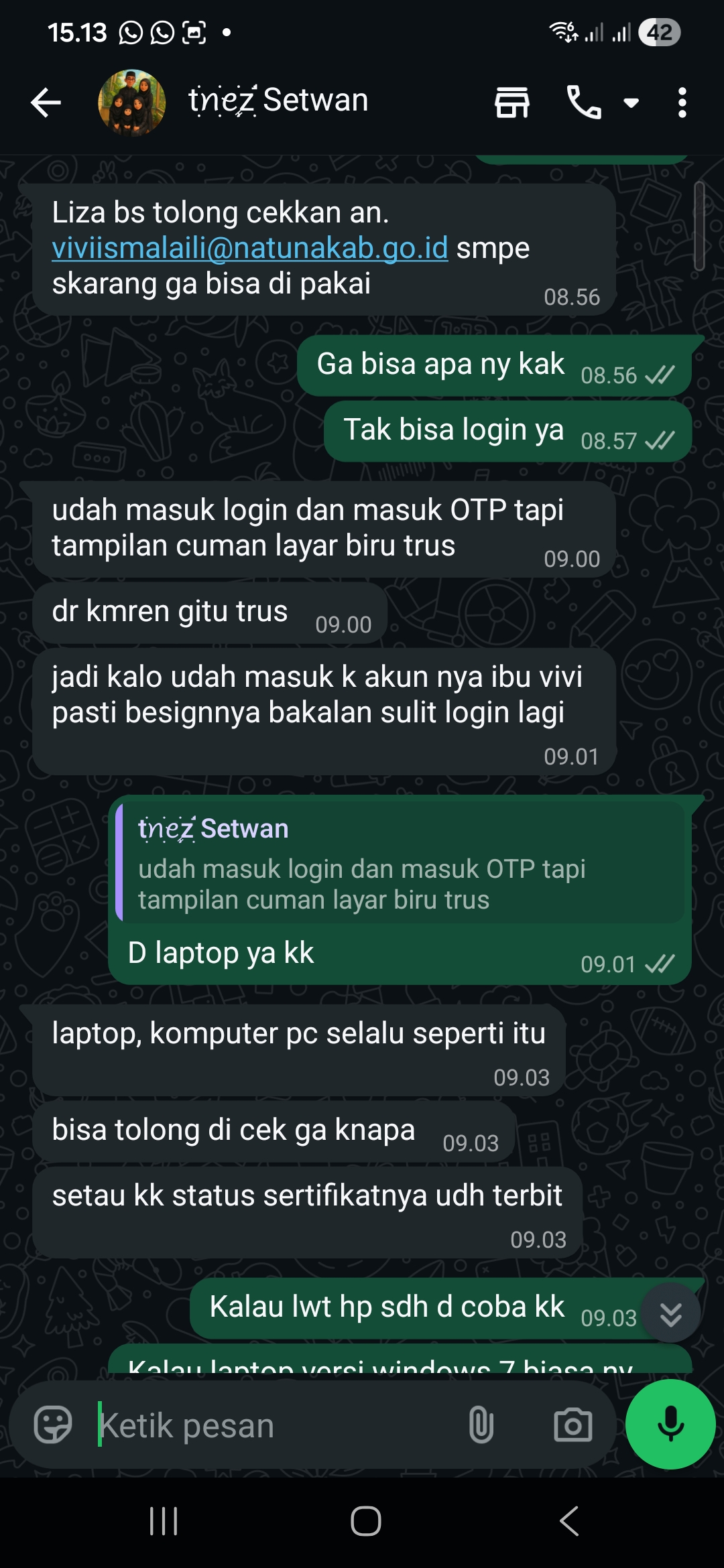 Tidak bisa login aplikasi besign, tampilan layar biru