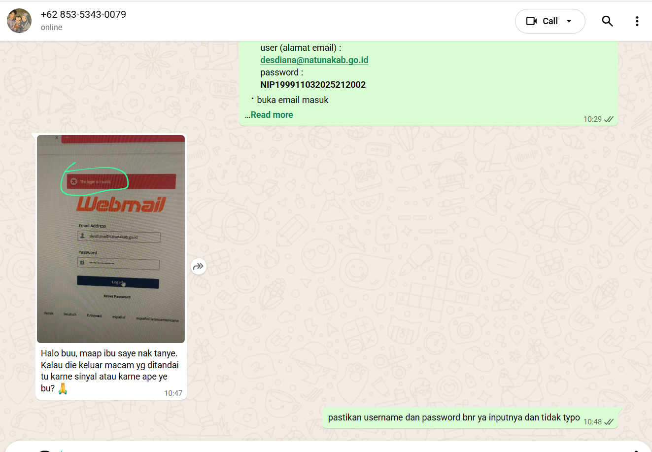 login invalid saat coba login webmail